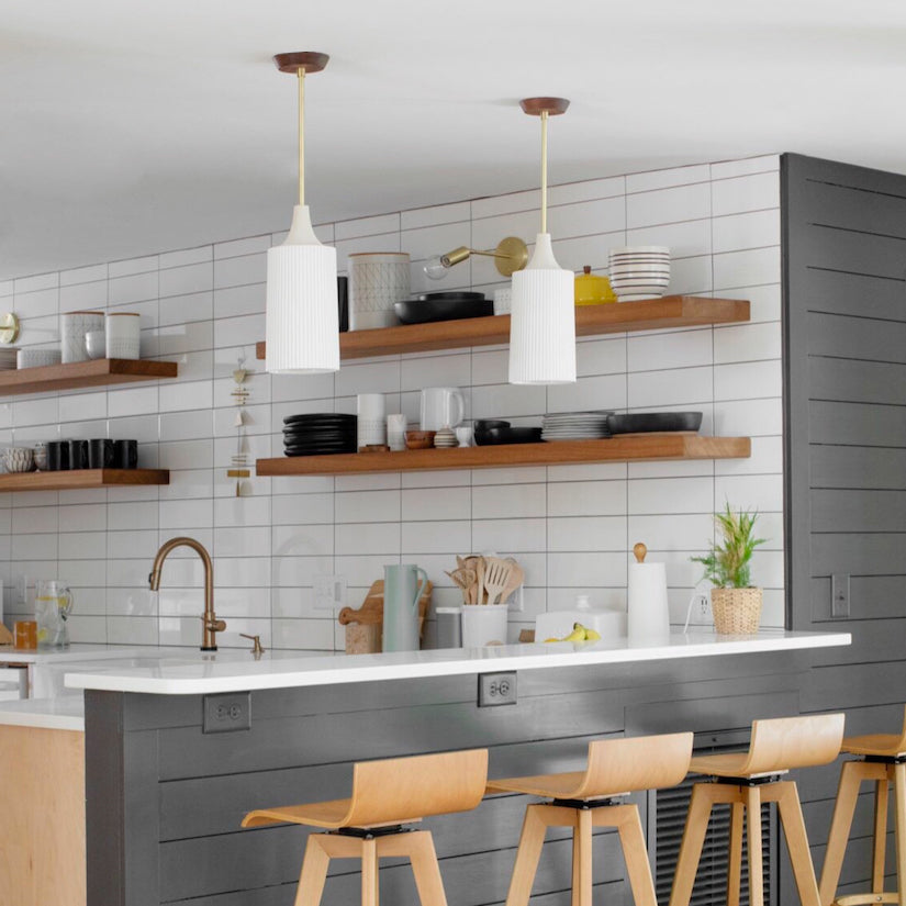 Taking inspiration from the earthy textures and glazes of mid-century studio pottery and celebrating the serene lines of falling water, the Tumwater Collection features locally hand-cast opaque stoneware shades and turned wood parts. All fixtures are handmade to order.
