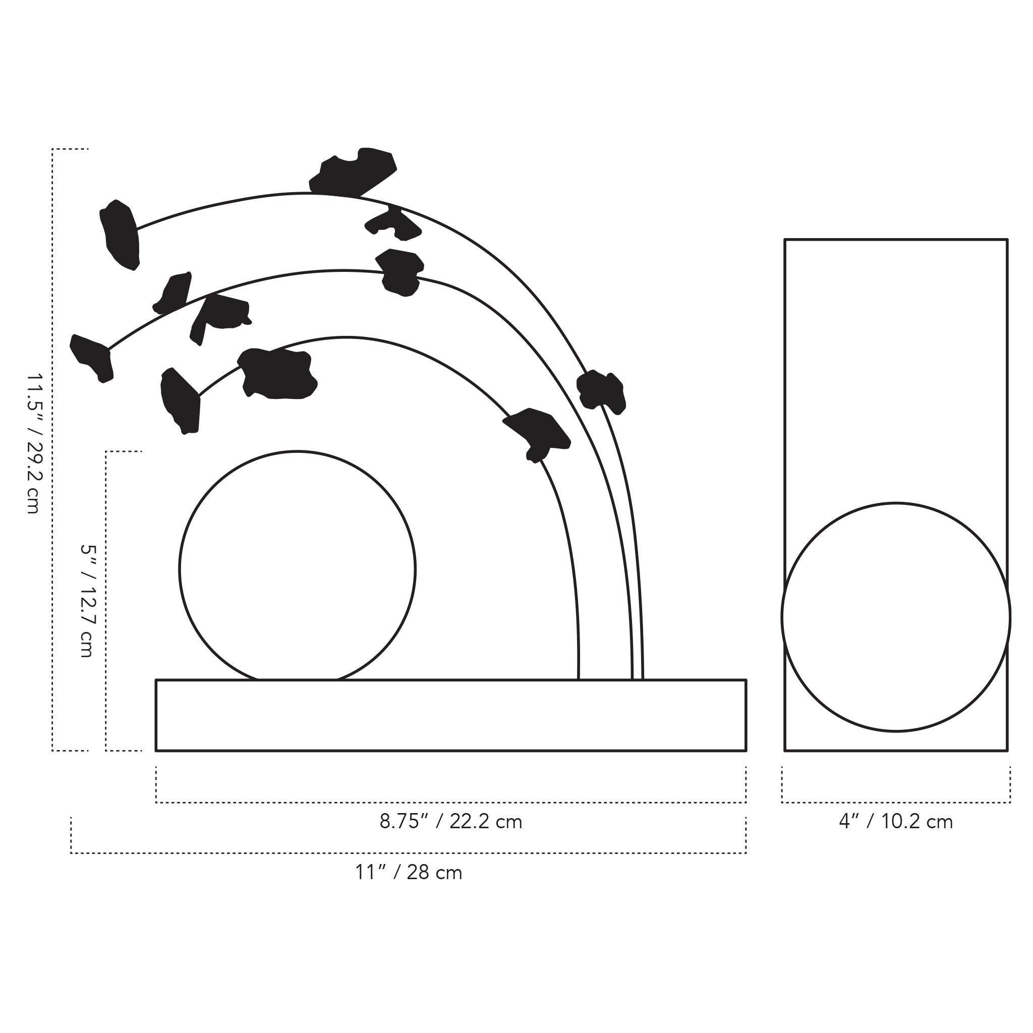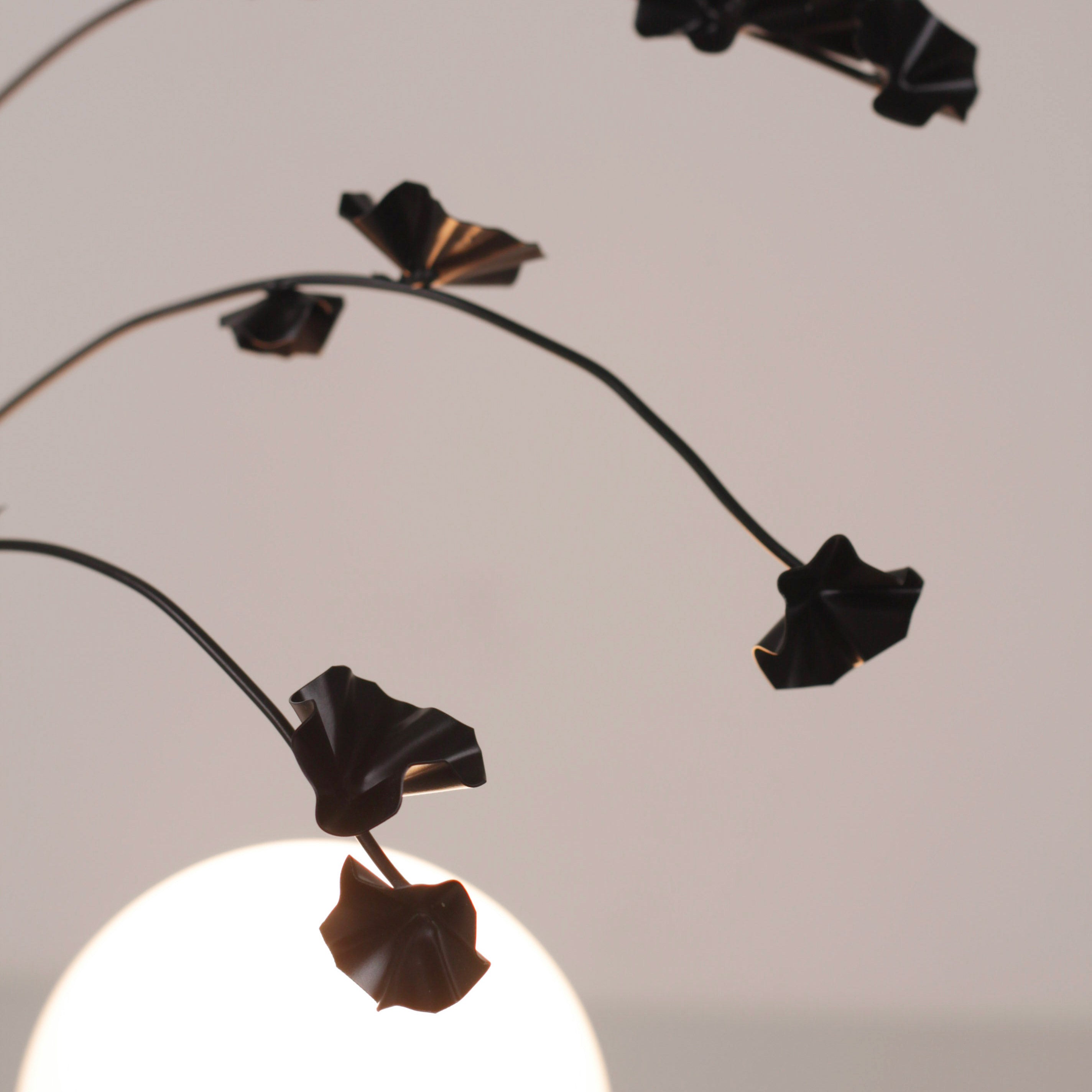 Graceful flowers sway before a moon-like sphere. This light sculpture is an ode to warm summer days and the beauty of nature. Forever a flower child, the Ikebana collection evolved from the minimalist ceramic stands studio founder Michelle Aaro made to display sprigs gathered from summer walks. Dried botanicals gave way to hand-sculpted flowers, a nod to the 70s copper sculptures from her childhood and her love of metalsmithing. Fully customizable, choose the sculpted flower finish you prefer, or collect and display your own dried botanicals. Then artfully arrange.