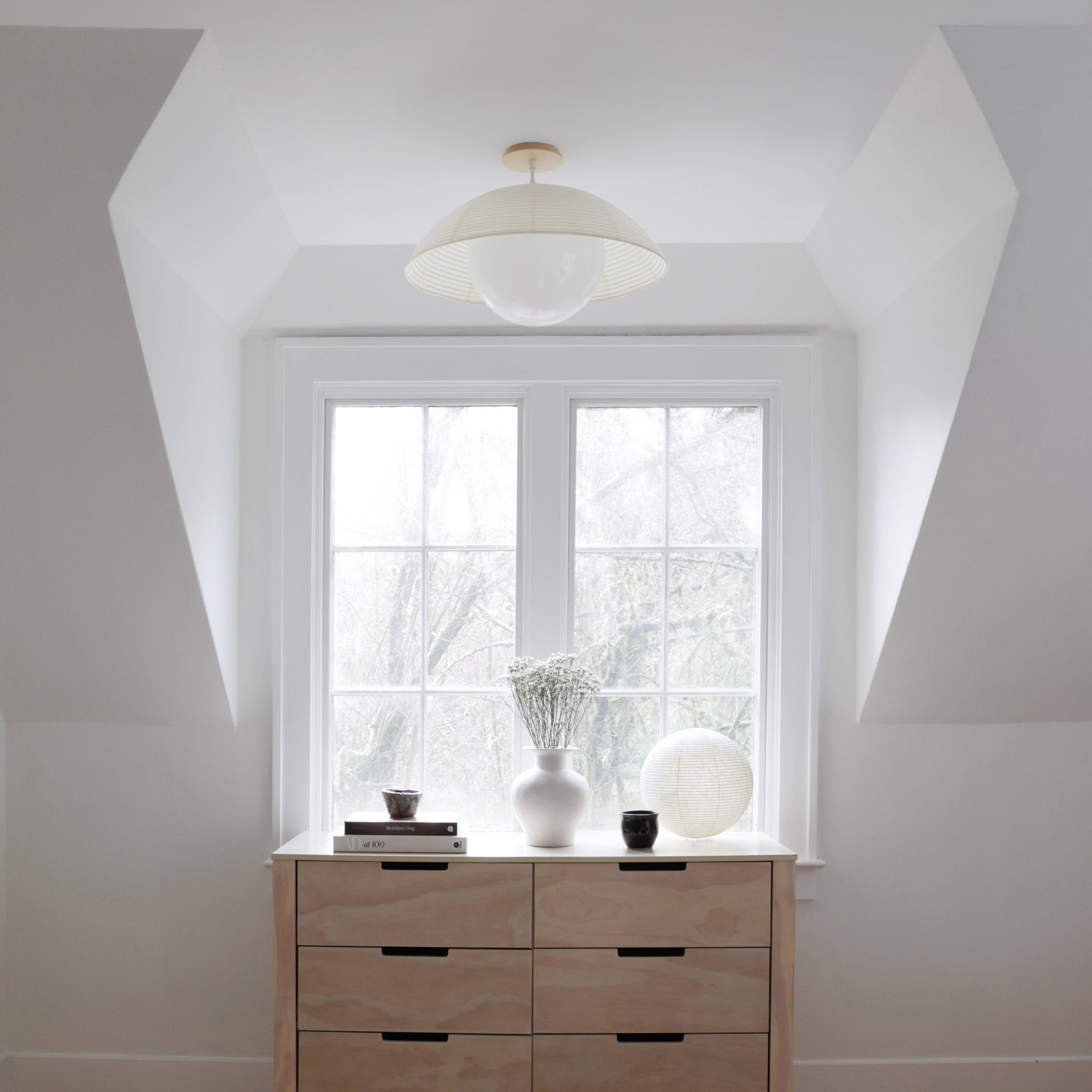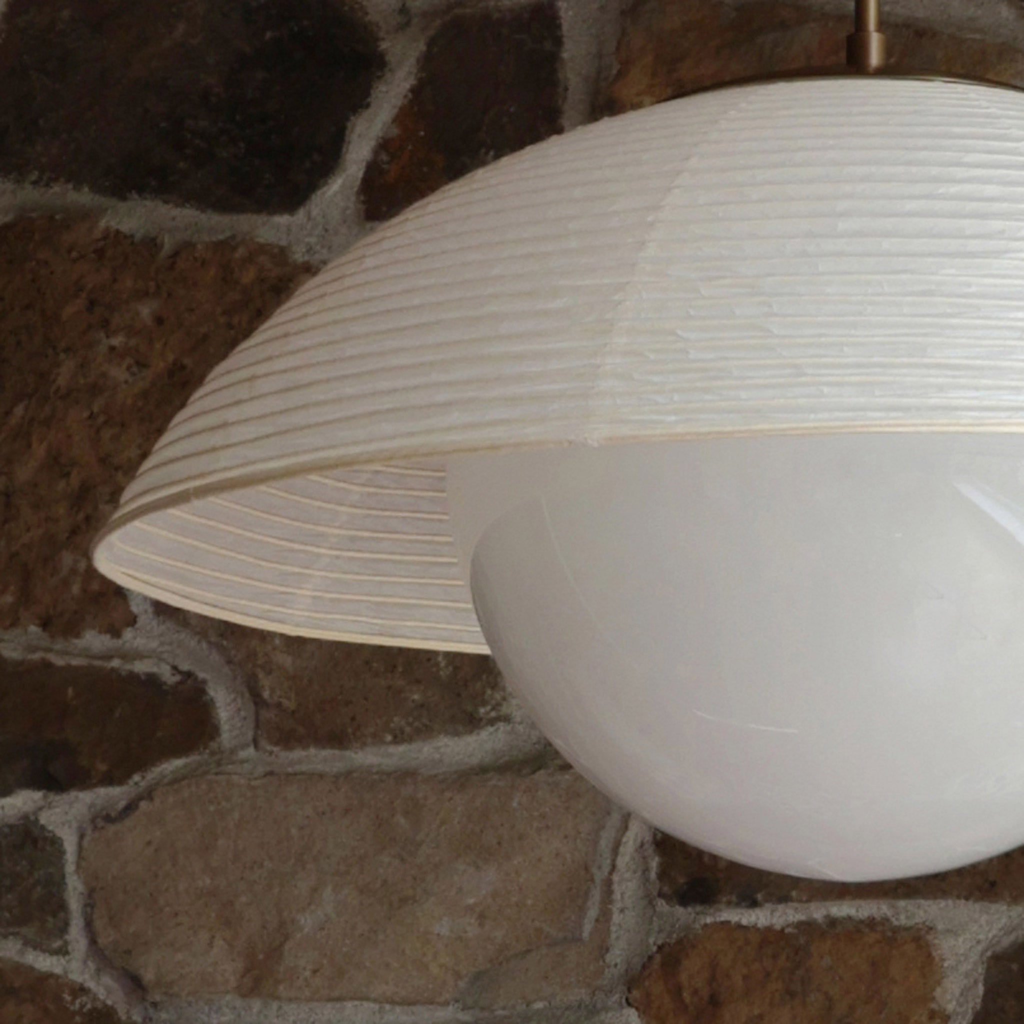 The Maru collection unites iconic Eastern and Western lighting traditions through thoughtful design and authentic craftsmanship. Our exclusive Japanese washi paper shades are handcrafted for us by a 90-year-old chōchin lantern atelier in Fukuoka Prefecture, Japan—a region renowned for its washi paper heritage. Handmade from thick, premium washi in a warm cream tone, each shade embodies the depth and elegance of Japanese artistry. We pair them with U.S.-blown 12" opal glass globes, solid brass, and wood components to create an exclusive design that feels both fresh and timeless.