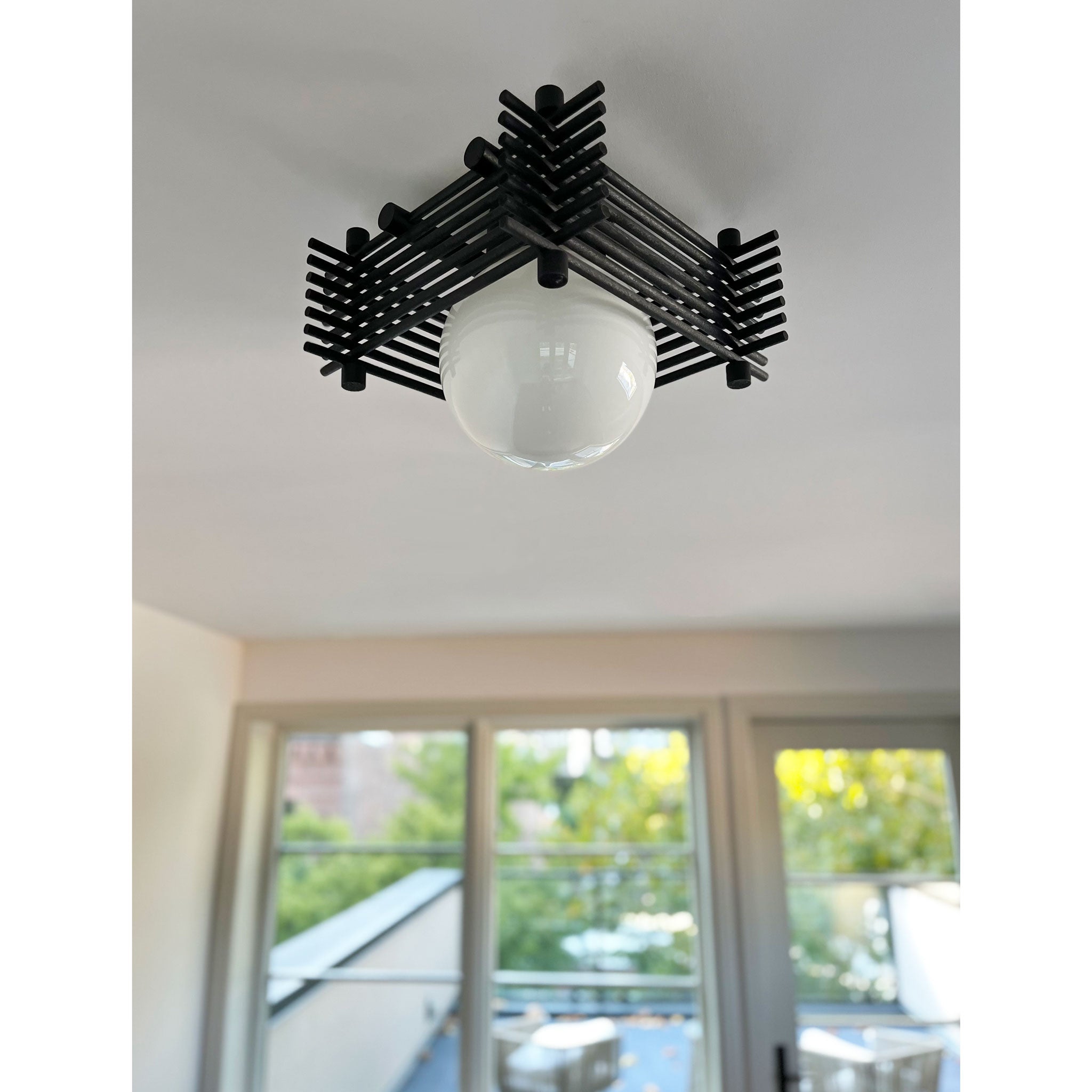A soulful minimalist lantern surrounding a moonlike sphere.