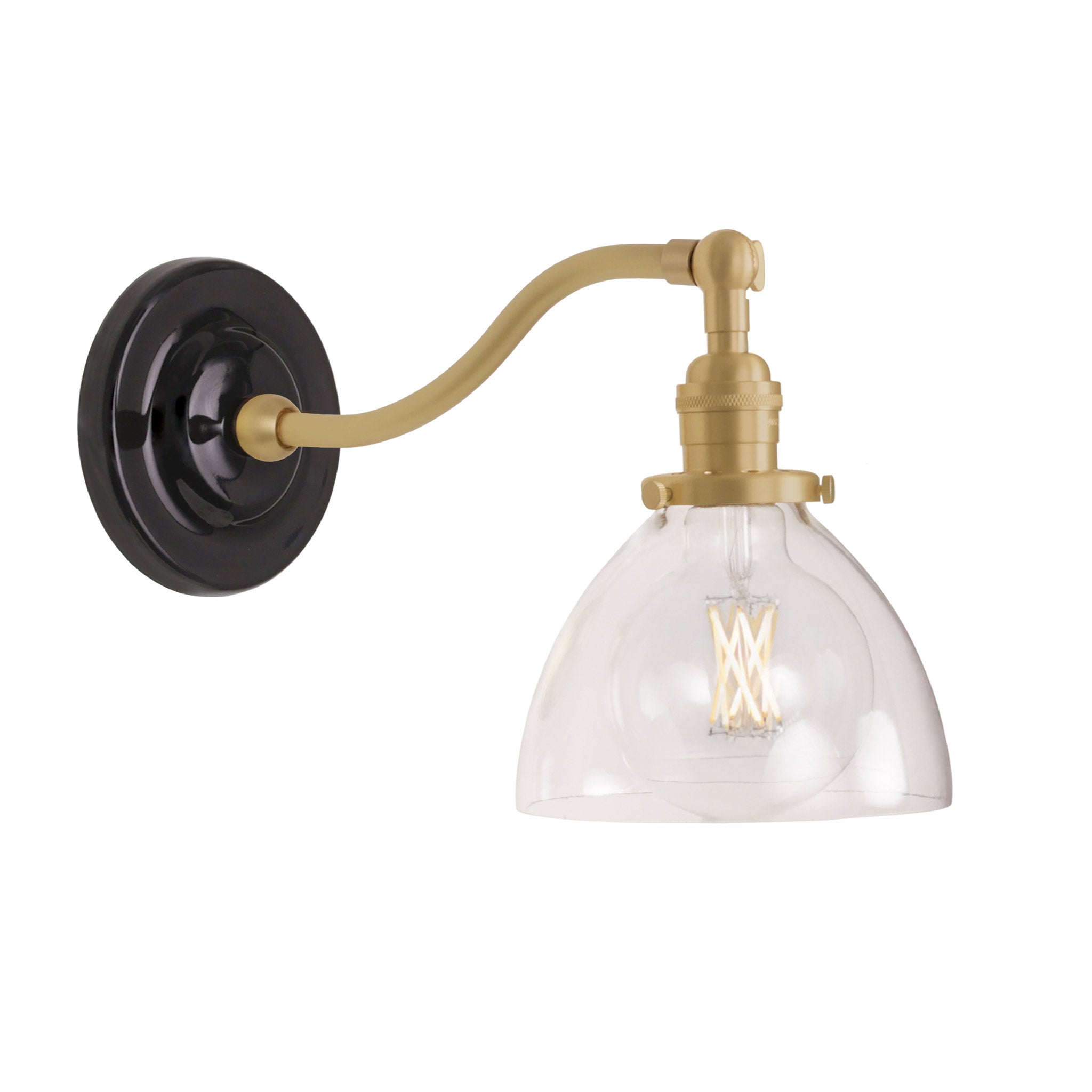 Inspired by a vintage French fixture, the Grace Sconce features early electric detailing, a graceful arm, and your choice of a glossy ceramic or metal backplate. Equally charming with either an exposed bulb or a glass shade, the design invites endless customization. A timeless blend of beauty, charm, and craftsmanship.
