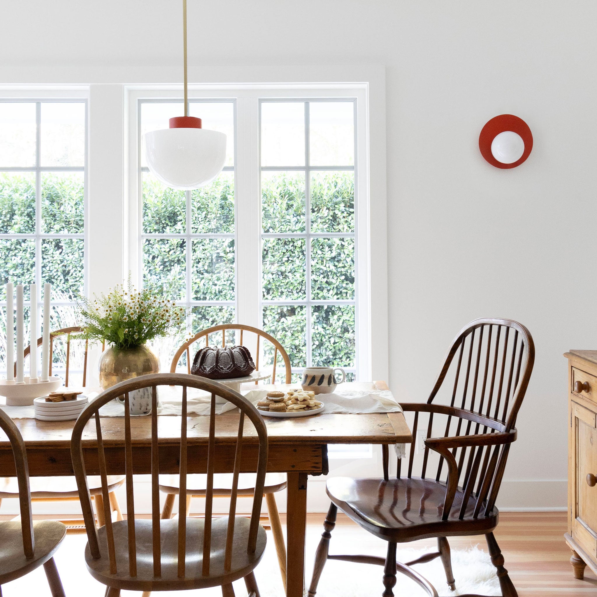 We are delighted to offer our popular hand-blown Bauhaus Anni glass shade in a larger ten-inch diameter size paired with our custom Cedar & Moss parts and finishes.  A smaller 6.5" inch diameter size is also available.