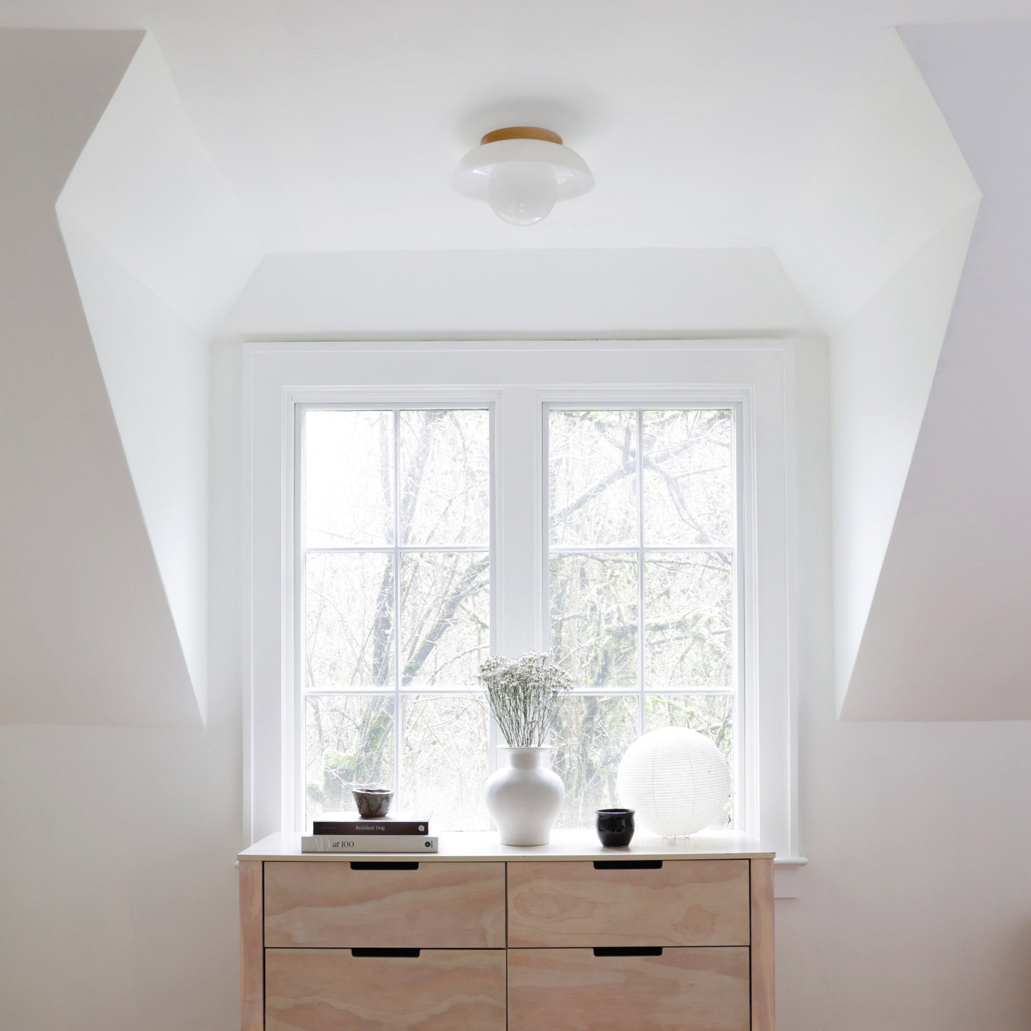 The Glass Lexi Large 6" features a 12" handblown opal glass shade, a 6" globe, a wood or metal canopy, and a dimmable LED bulb.