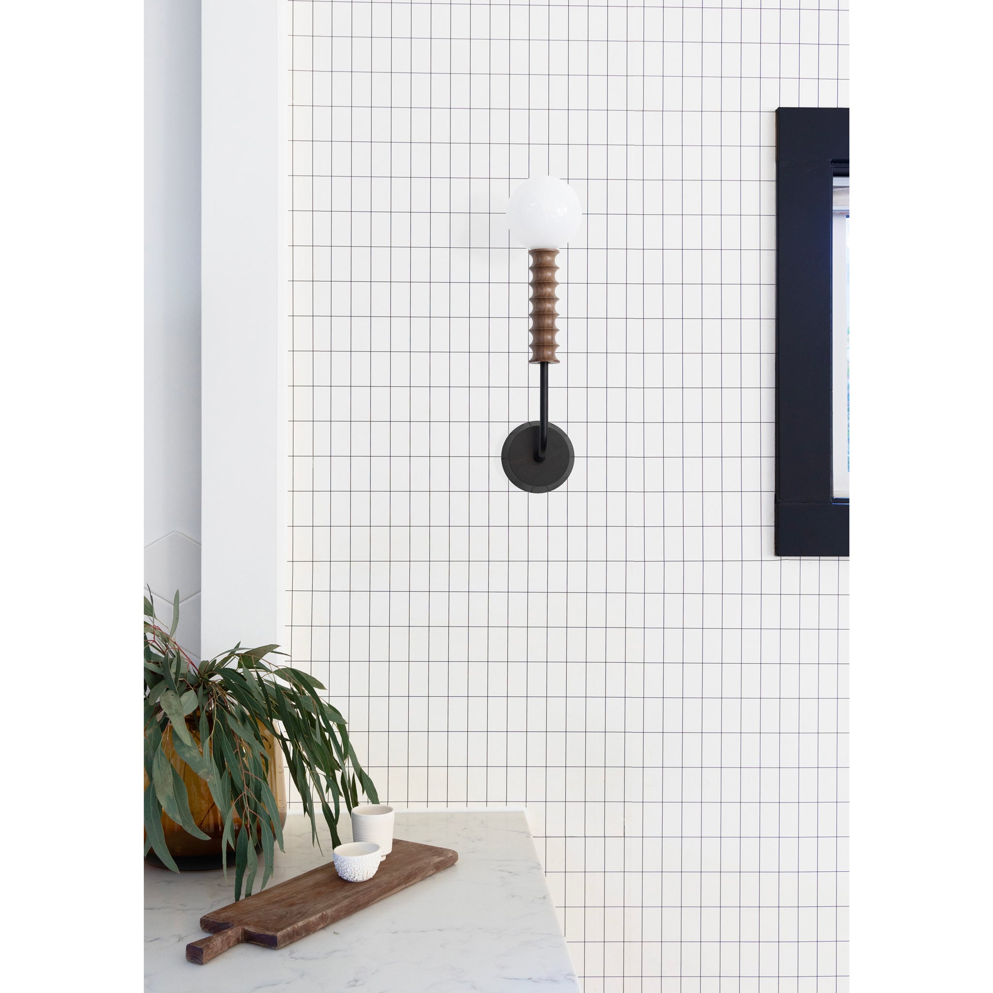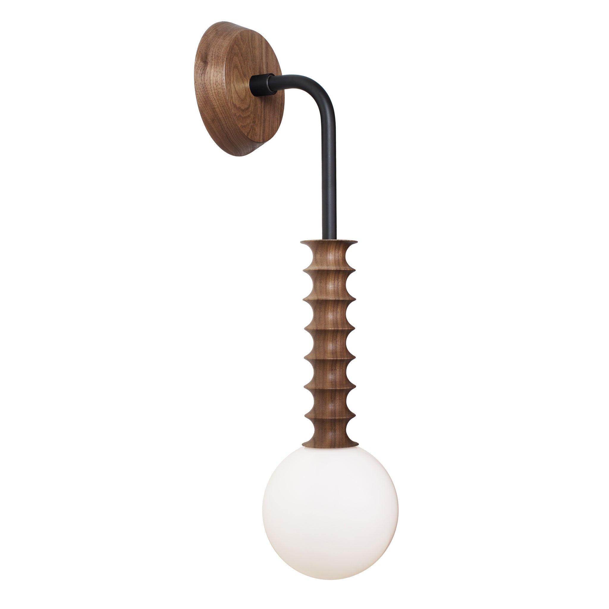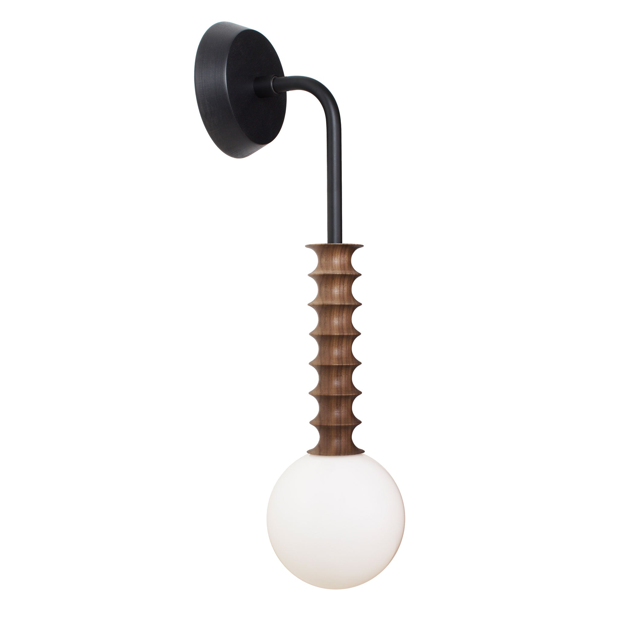 A statement sconce in walnut with notable confidence and character.