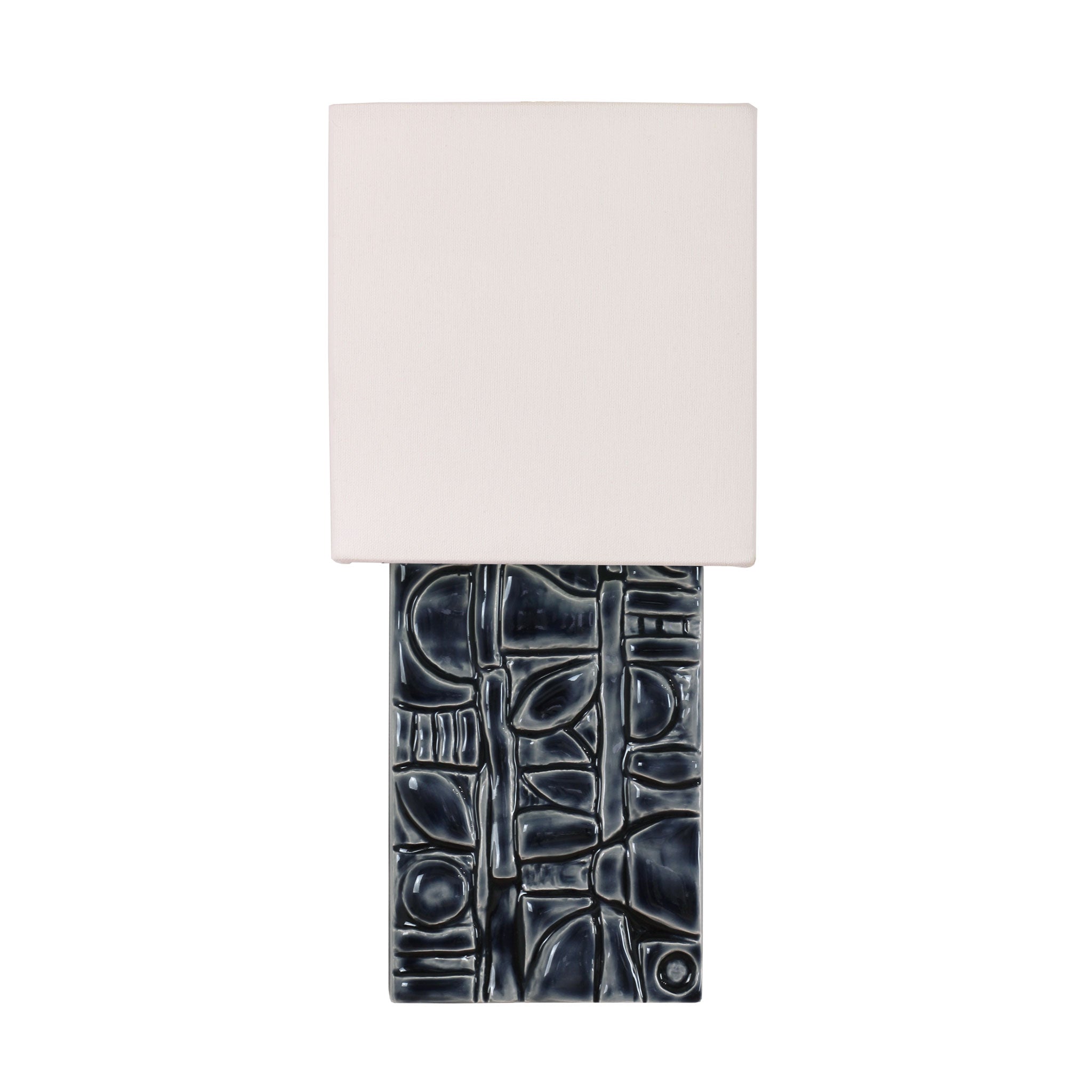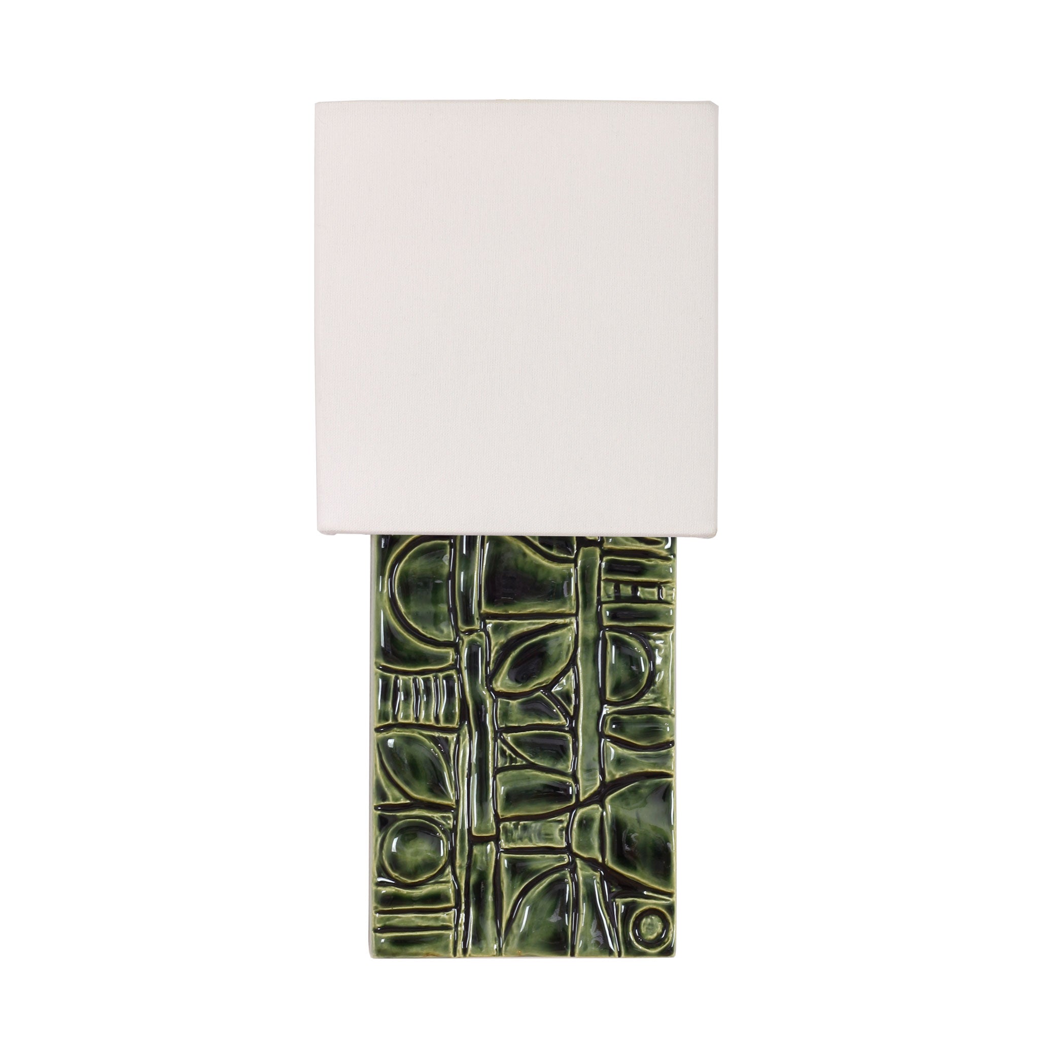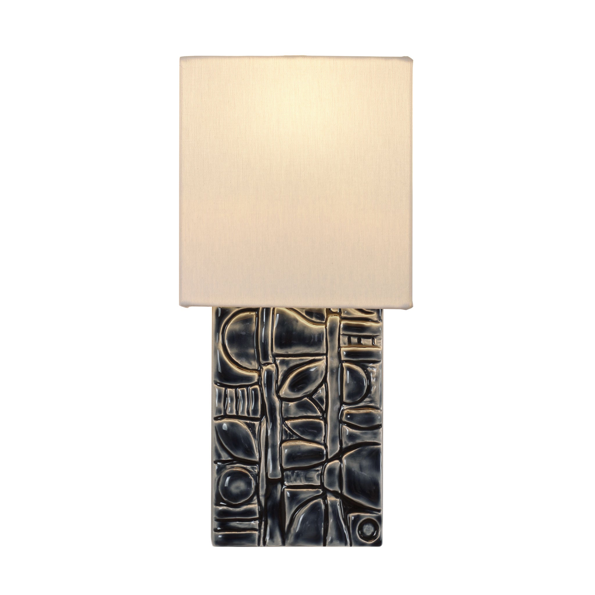Exquisite handmade art tile from local tile studio Pratt & Larson featuring a lovely, low profile linen shade that elegantly diffuses light in all directions and highlights the beautiful dimensional texture and artisan glaze.